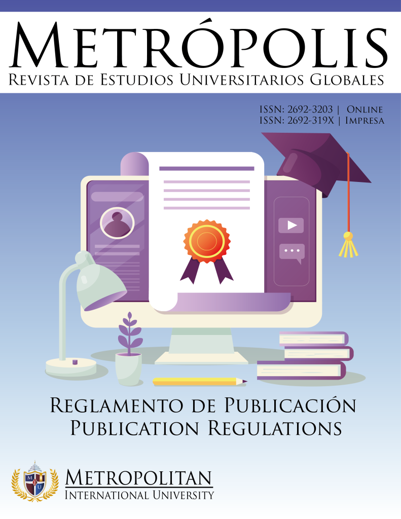 La Revista de Estudios Globales Universitarios «Metrópolis» es una revista Semestral publicada por Metropolitan International University a través del CIM. Esta Revista de carácter multidisciplinario permite a sus participantes la divulgación de diferentes temáticas. Los artículos publicados son arbitrados mediante un sistema de doble ciego.